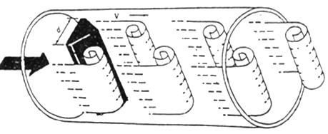 在流体中设置非流线型旋涡发生体(阻流体),则从旋涡发生体两侧交替地产生两列有规则的旋涡,这种旋涡称为卡曼涡街,如图(一)所示。