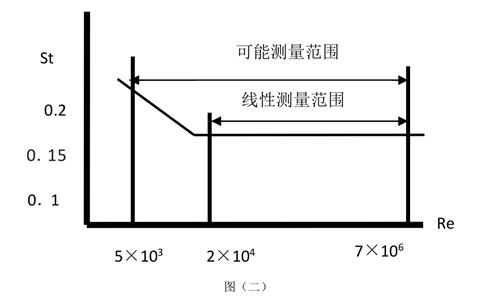 由此可见,通过测量卡门涡街分离频率便可算出瞬时流量。其中,斯特罗哈尔数(St)是无因次未知数,